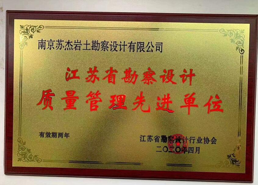 江蘇省勘察設(shè)計質(zhì)量管理先進(jìn)單位